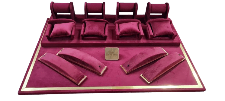 - Elegant velvet-finish jewellery display tray designed for professional presentation